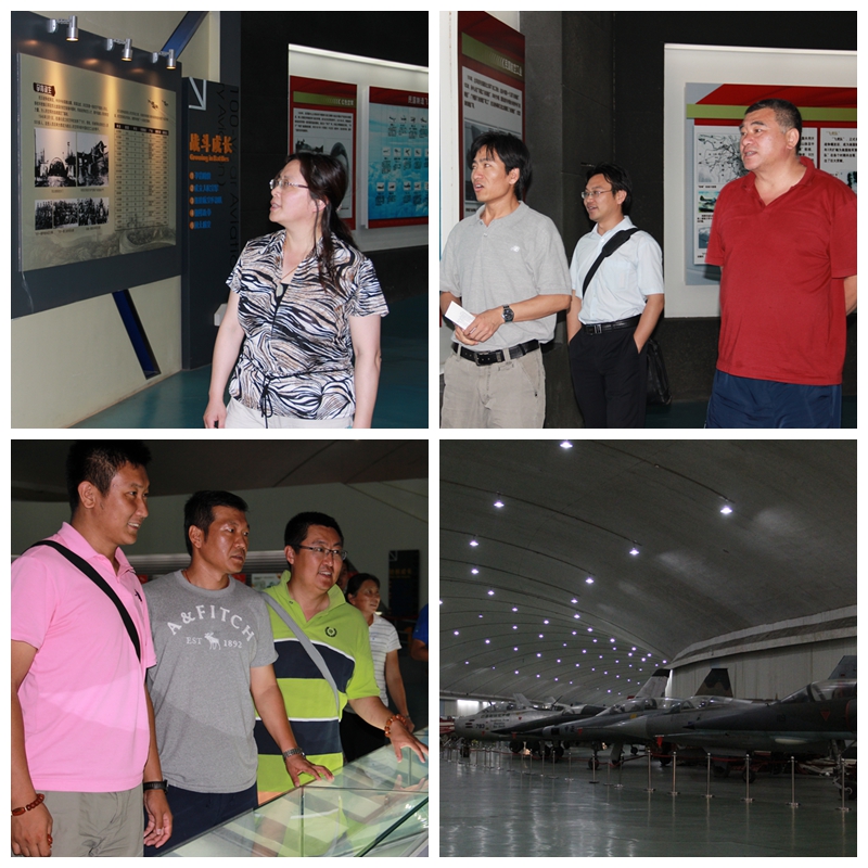 老师们先进入“洞库展厅”参观。该展厅的展品琳琅满目,可以看到从中国古代的航空发明到现代使用的高空高速歼击机,以及从近代引进国外的航空器到国产的各种类型飞机,展品依照历史的时序陈列于大型展厅两侧,构成了我国航空历史长河的壮丽景观。教工党员们无不为我国航空事业的发展壮大而深感自豪。