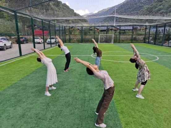 带领女教工进行健身瑜伽锻炼
