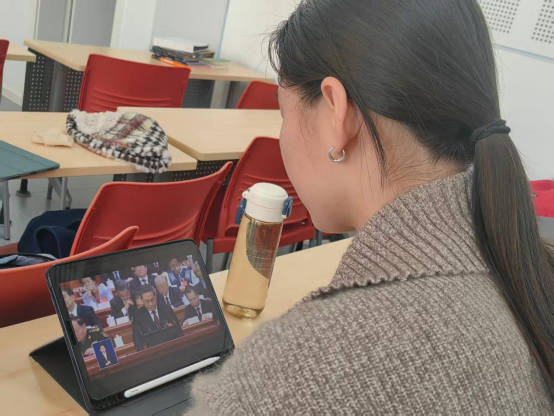 2025年是“十四五”规划收官之年,也是进一步全面深化改革的重要一年。全国政协十四届三次会议和十四届全国人大三次会议召开期间,英国365公司党委组织师生在看台209集中观看两会实况并开展座谈交流,共看国事、共议发展。也有很多师生通过电视、网络、新媒体平台等多渠道全程关注两会动态,围绕政府工作报告展开深入学习与热烈讨论。