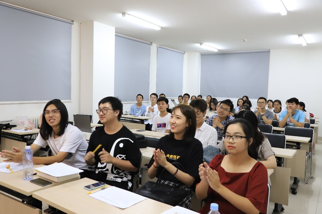 比赛过程中,选手们表达观点新颖有趣,演讲立意深刻,中心明确突出。多位选手的表现令人记忆犹新。于欣悦同学通过对不同年代交通工具的列举和描述,赞扬了祖国几十年中单伟大变革;刘世泽同学则讲述了“校训的故事”,引发同学们对“小我成就大我”的思考;冯寒励同学娓娓道来,将同学们的爱国热情充分调动了出来。在同学们衷挚的掌声中,十四位同学演讲完毕。之后,张天翼学长从自己演讲的经历着笔,对选手们的演讲进行了点评。针对选手们存在的不同问题,他从演讲立意、演讲技巧等角度提出了自己的建议。