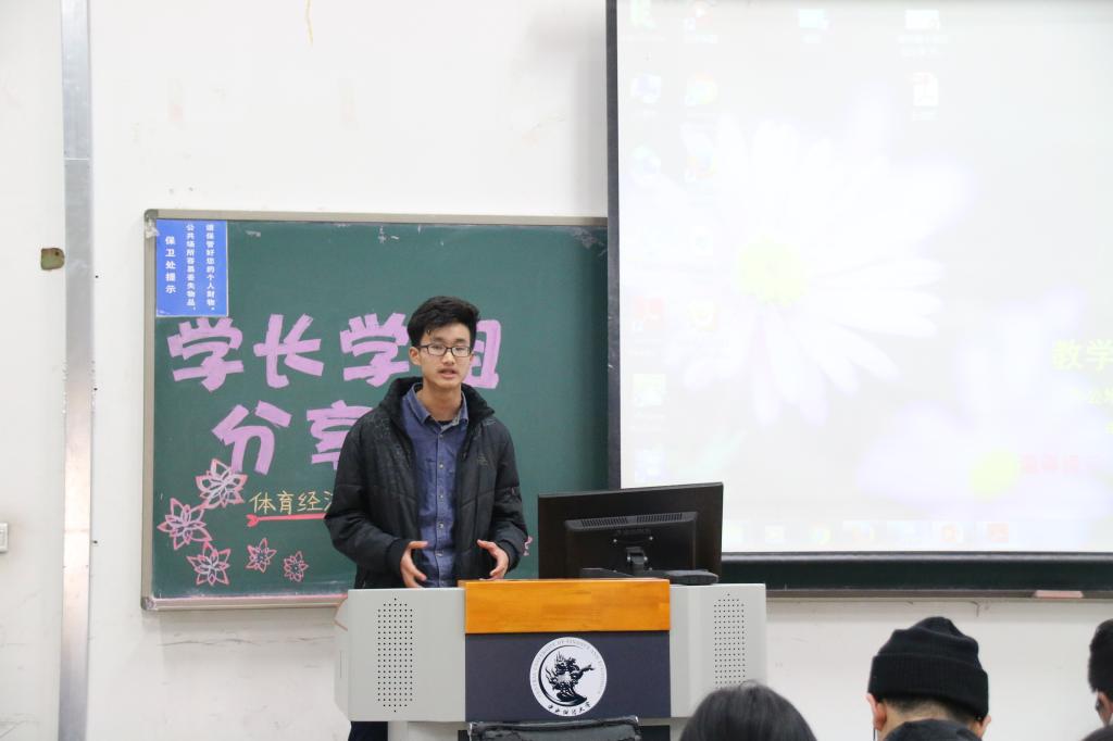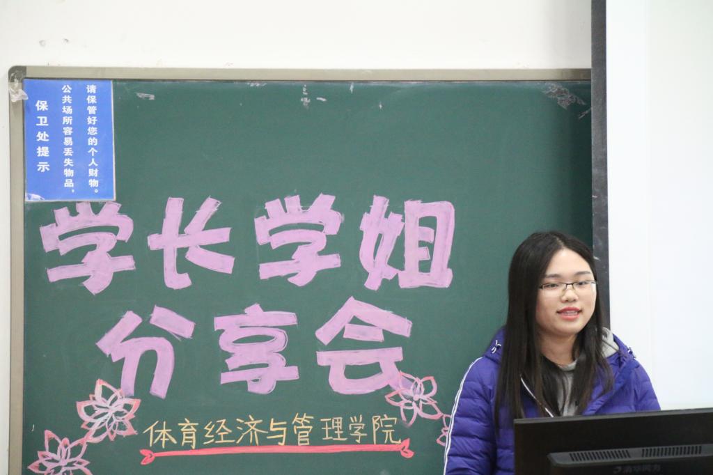 2017年11月11日下午,我院2017年学长学姐保研经验分享会在沙河校区主教学楼105房间顺利召开。本次分享会由体经2015级曾伟同学主持,邀请到体经2014级朱旖晨同学和2014级王佳妮同学做分享,我院全体2017级本科新生、部分2016级本科生参与并听取了学姐经验分享。朱旖晨同学,在刚刚结束的优秀毕业生报送研究生中,拟保送至我校财经研究院区域经济学专业攻读硕士研究生;王佳妮同学,拟保送至我校财政与税务学院税收学专业攻读硕士研究生。在经验分享会中,朱旖晨同学和王佳妮同学分别为大一大二同学分享了考研保研等相关经验和需注意事项。