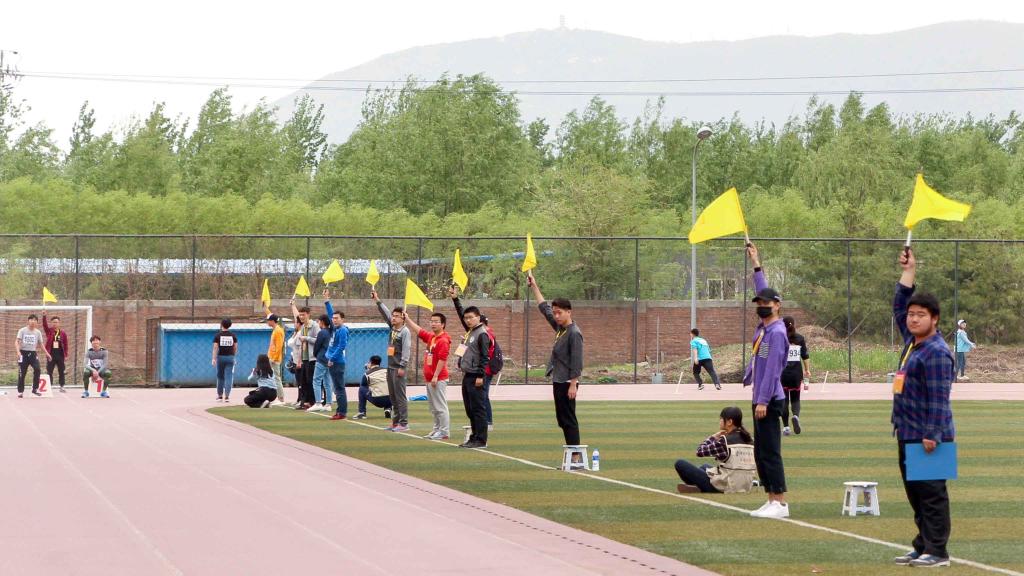 此次运动会竞赛项目分别于4月20日和21日进行,我院的裁判老师们和志愿者们,每天7:30就开始进行有条不紊的准备,有的人清点着秩序册、号码牌,有的人来回跑动、搬着一箱箱的物资,他们一次次进行检录,他们耐心地为不清楚自己赛道的运动员提供指导,他们尽责地把每一张号码牌亲自交到运动员的手中,他们时刻注意着跑道上是否有闲杂人等,他们时刻关注是否有身体不适的情况发生,他们的视线永远专注,他们的思维永远缜密,他们用公正公平的原则,保障了整个比赛的顺利进行。