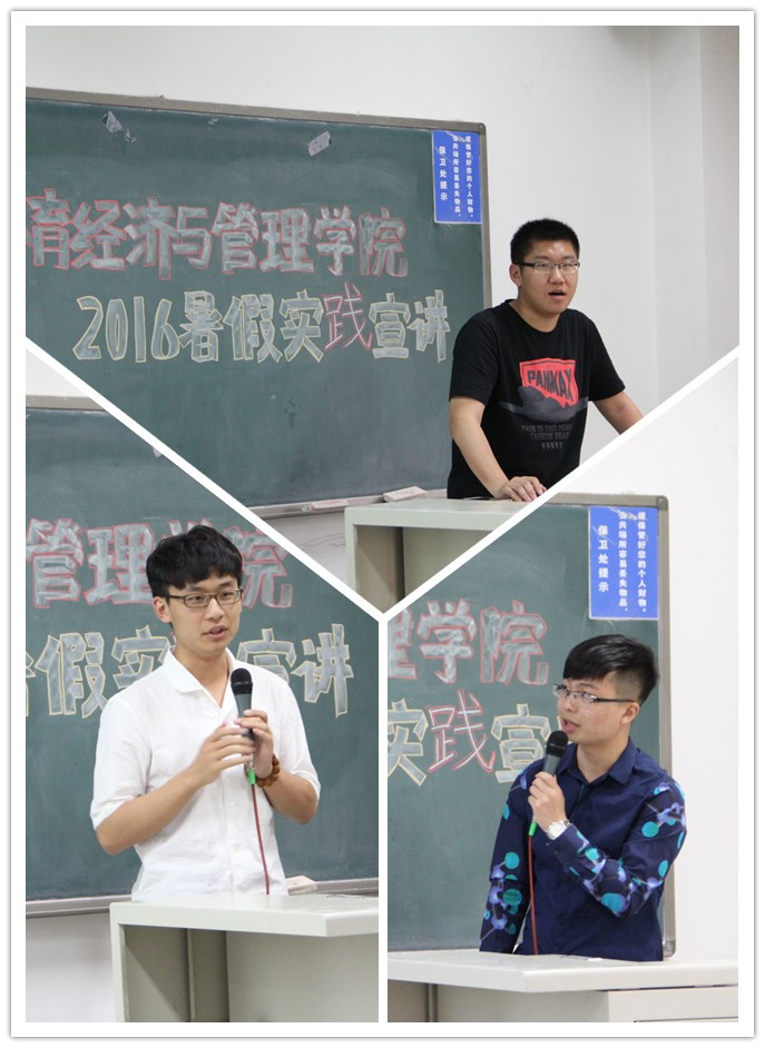 5月27日晚七点,我院2016年暑假社会实践宣讲会在我校沙河校区东区主教306举行。此次宣讲会特邀请2015年暑假社会实践一等奖获得者,金融学院国际货币13级何宇飞以及金融学院14级金融工程孟元做分享。我院学术实践部部长姜昊男主持此次讲座,我院15级全体同学和部分14级同学参加了此次宣讲会。