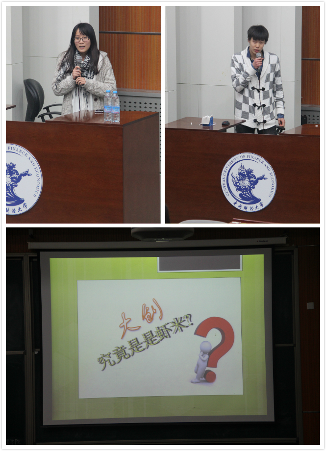 2015年3月16日晚,为了让同学们对大学生创新创业训练有更深入的了解,帮助同学们做好大创的准备,我院在4号楼107教室开展了“大创经验交流分享会”,参加本次交流会的有我院党总支书记林琼,辅导员老师郭佳佳、张振磊、李秋月以及12级、13级、14级的本科生,会议进行了有关大创的经验交流与分享。