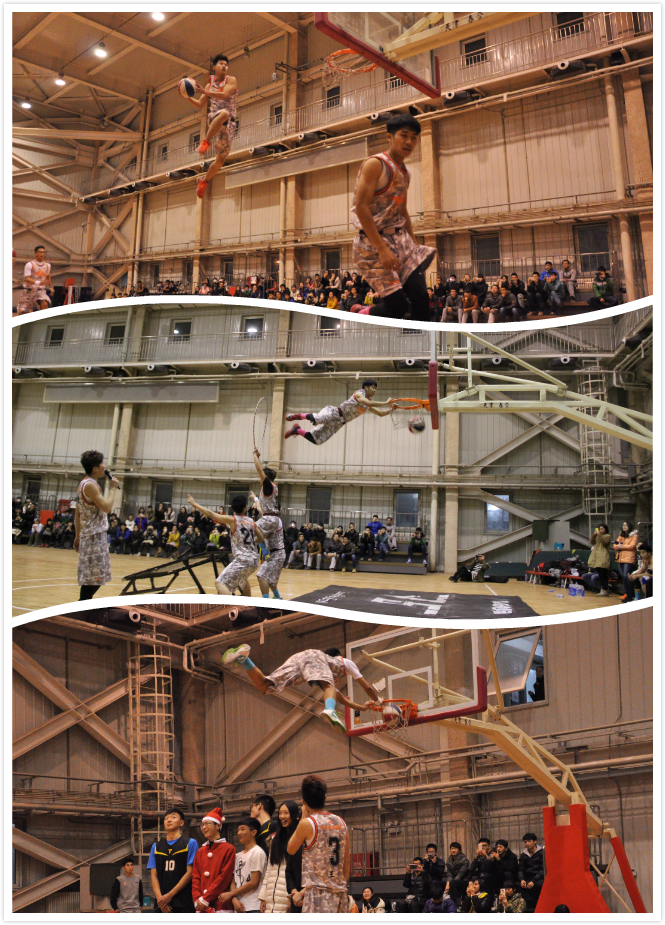 本次活动请来的“JS特技灌篮球队”是国内最具实力的特技灌篮队伍,具有表演难度系数高、创意性强、失误率低、表演元素丰富等优势;“酷飞篮球社”是我校比较著名的社团的之一,由其主办的3V3篮球赛正在全校范围内火热进行,二者都是非常优质的篮球团体。友谊赛开赛前,酷飞篮球社的啦啦队首先带来了精彩的表演,随后,友谊赛正式开始,两个球队都发挥了高超的篮球水平,每个队伍的篮球技术可谓出神入化,控球动作潇洒利落,帅气逼人,他们在赛场上不断地奔跑、传球、投篮,配合默契,身手矫健,打法多变,场边传来阵阵加油声,观众的热情一次次将气氛推向高超,一个小时后,友谊赛结束,JS特技灌篮球队比分领先,赢得了本次比赛。随后,观众们最期待的灌篮表演登场了,只见球员们手持篮球,加速助跑然后从弹簧垫上起跳,通过弹簧垫的弹力弹跳到篮框下,把球精准地扣进篮框里,一次次难度系数极高而又精准无误的表演惹得全场观众一阵阵热情的鼓掌和欢呼。20分钟后表演结束,活动的最后还进行了抽奖环节,幸运观众获得了合影留念的机会,本次活动在欢乐的气氛中结束了。