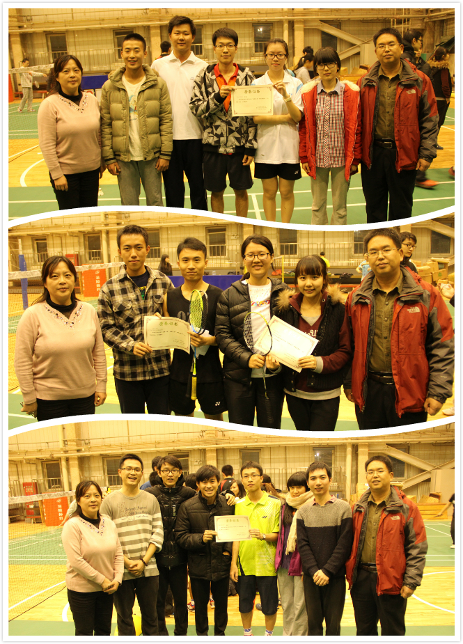 这次比赛为团体赛,在预赛阶段采取三局两胜11分制,决赛阶段则采取五局三胜21分制。在预赛阶段,ABCD四组采取组内单循环制,依据积分排名前两名决定晋级。决赛阶段,采取交叉淘汰的方法决出三甲。因此,要获得比赛的胜利,不仅需要参赛者强大的个人能力,还需要出色的团队配合,战略战术安排,英明的战术安排甚至能做到田忌赛马以弱胜强的效果。赛场上,各参赛队员深刻贯彻“赛出风采,羽乐同行”的比赛宗旨,以迅猛的攻击配上灵巧的步伐,伴随洁白的羽毛球在网的两边飞舞,时快时慢,时高时低,场外阵阵惊呼喝彩排山倒海而来,场内选手却目光沉毅,全神贯注于比赛中,丝毫不为外物所动。经过10个比赛日的激烈角逐,统计与数学学院,中国公共财政与政策研究院与外国语学院的合队,管理科学与工程学院依次摘得前三甲。
