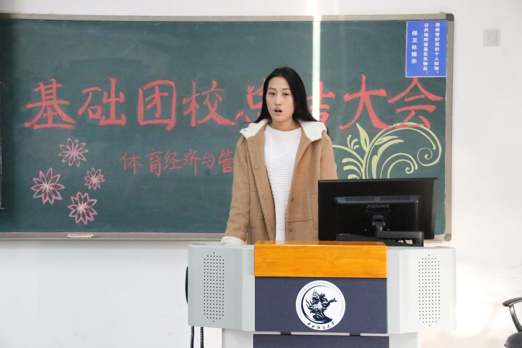 最后,我院团总支副书记张萍同学对基础团校系列活动和本次会议进行总结。她对全体学员在本次基础团校学习中的良好精神风貌表示高度赞扬,并同时号召全体学员要时刻积极参加各类团学活动,在实践中积极探索、发现和创造,坚定青年的理想信仰,为学院发展做贡献,为学校“双一流”建设做贡献,为实现中华民族的伟大复兴做贡献。