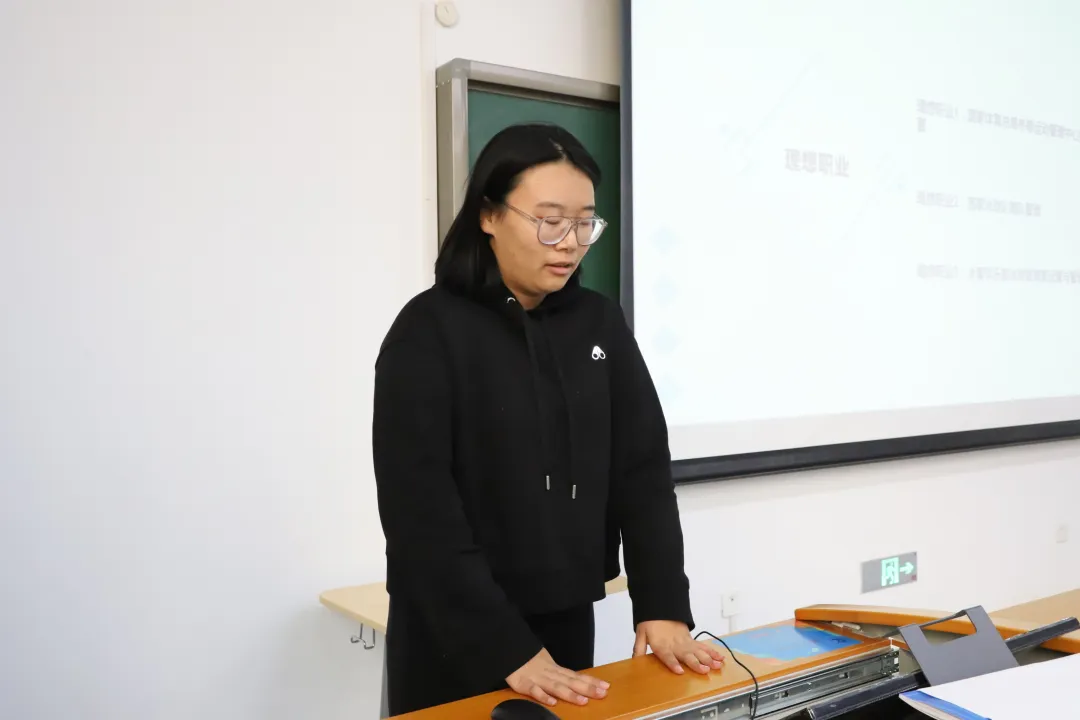 在刘老师介绍本次比赛的流程及评分标准后,参赛同学依次进行了演讲和答辩。参赛同学首先对个人职业生涯的主客观条件进行测评和分析,对个人的兴趣爱好和能力特点进行综合分析与权衡。他们结合时代特点和职场要求,根据自己的职业倾向,确定其最佳的职业奋斗目标,并为实现这一目标做出行之有效的规划。在个人自述环节完成后,参赛选手针对评委老师们提出的问题,一一进行了答辩。