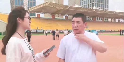 图8为队员常歆怡在体育场向附近居民了解公共体育设施使用情况