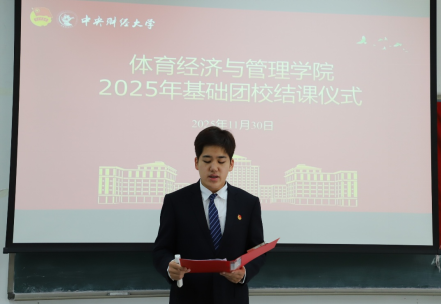 最后,张振磊老师在讲话中指出:“体育经济与管理专业的青年学生,应当将团校学习作为起点,清晰明确自身目标,并为实现该目标拼搏奋斗。希望同学们踊跃参与学校组织的各类活动,在志愿服务和专业实践过程中砥砺品格,提高自身能力。”