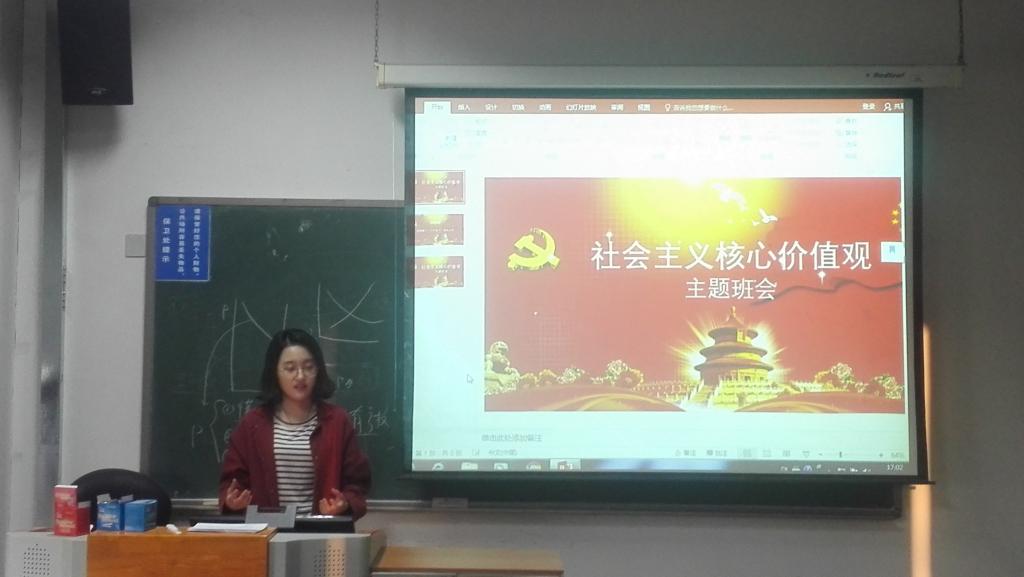9月27日下午4点,我院15级1班全体同学于沙河校区主教207教室召开了一次以“社会主义核心价值观”为主题的班会。会议由曾伟同学主持,并邀请了辅导员李秋月老师出席。此次班会中,同学们主要围绕社会主义核心价值观展开讨论。