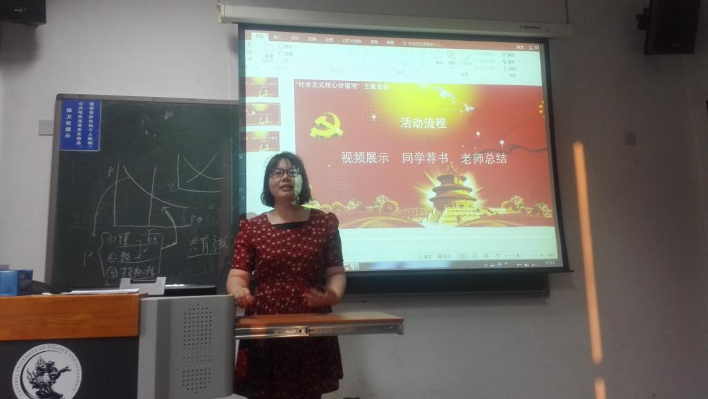首先是主持人介绍了社会主义核心价值观的产生背景和基本内涵,然后针对今天的流程进行了简明的介绍。让大家从基本层面了解了“富强、民主、文明、和谐;自由、平等、公正、法制;爱国、敬业、诚信、友善”这短短十二组词背后蕴含的无尽的力量。