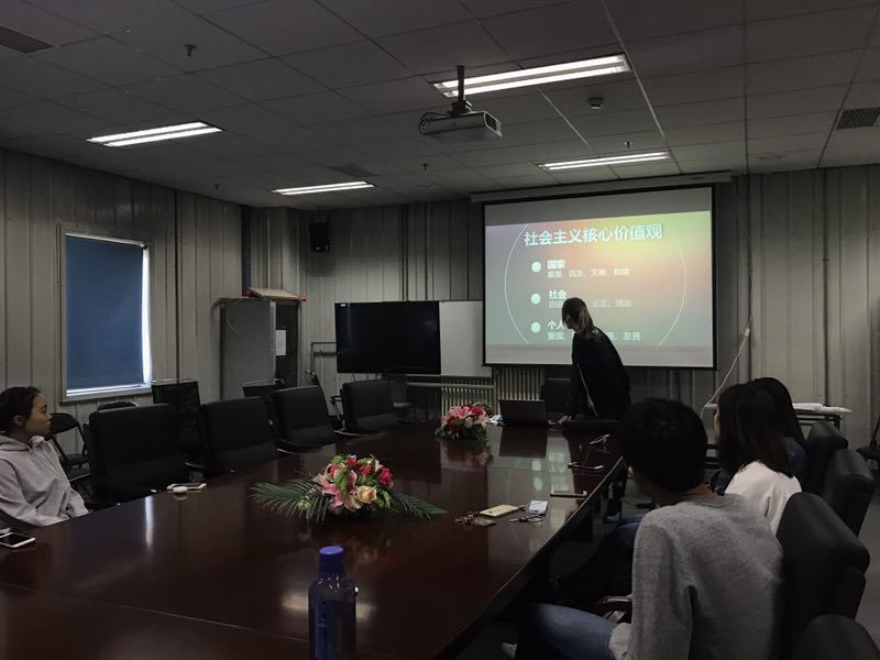 9月28日上午9点,我院英国365公司16-2班于体育馆二层会议室召开“社会主义核心价值观”主题班会, “专题学习+交流讨论” 的开展形式激发师生对于社会主义核心价值观中关于“爱国”、“敬业”关键词的热烈讨论。此次班会由16-2班班长刘姝鑫同学与团支部书记杨文蓉同学共同组织开展,出席本次班会的有体育经济管理学院院党委书记、体经16-2班班主任林琼老师、体经16-2班辅导员胡庆老师以及16-2班全体同学。