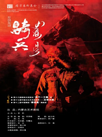 《骑兵》是中国舞台艺术史上首部以骑兵为题材的原创民族舞剧,是一部反映时代转折关头,个人命运选择与国家民族命运选择紧密相连的作品;是一部蕴含人性之美、万物和谐、人类和平愿景的作品;是一部激励当代人向忠诚勇敢的人民骑兵致敬的作品。全剧共分为六幕:男儿归、草原殇、从军别、战马情、英雄泪、骑兵魂,讲述了受到中国共产党革命思想感召的蒙古族青年学生朝鲁,坚定地选择加入内蒙古人民骑兵队伍,为全中国的解放而战斗的故事。全剧最后,失去左臂的英雄朝鲁选择放下属于他的荣耀,带着牺牲的战友和战马的忠魂回归草原。硝烟散尽的今天,历史的丰碑上字迹鲜红,那是我们永远都不能忘记的先烈。