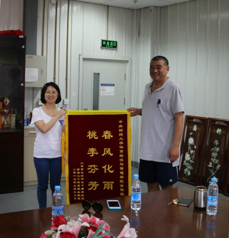 “管他十年混如何,君卿归来仍少年”。下午4点,毕业十周年师生座谈会顺利召开。校友们向当年一样面对亲爱的老师们一一汇报了自己毕业十年来的工作、生活情况,表达了对母校和老师培养之恩的感谢,发言之间彼此相互调侃表达了对昔日同窗情、舍友情的怀念。出席座谈会的体育经济2003级班主任李毳老师,任课教师姜春华、张自如、闵捷、李永红、李坤等老师亲切寄语,表达对校友们的关怀和祝福。座谈会最后,校友代表向学院赠送印有“春风化雨,桃李芬芳”的锦旗和刻有“梅兰竹菊”的屏风,并依次向出席座谈会的老师们赠送鲜花,再拜师恩。