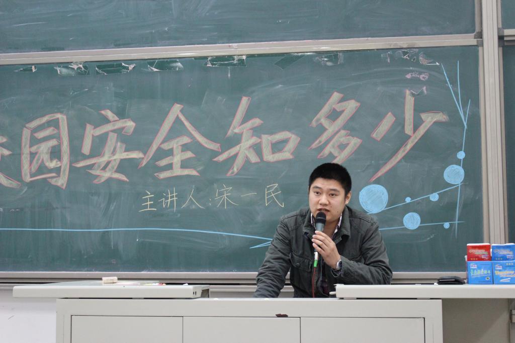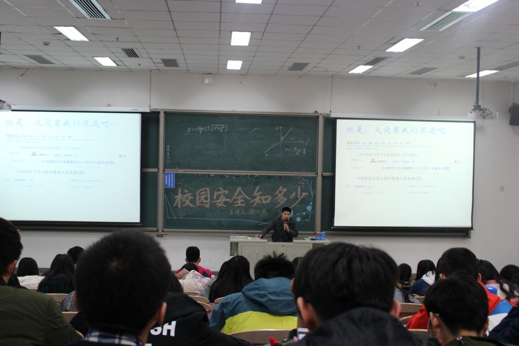 3月22日下午13点30分,我院与文传学院于沙河主教216M联合举办了主题为“校园安全知多少?”的安全教育讲座,主讲嘉宾为学校保卫处宋一民老师。宋老师是2016级新生军训期间负责军训安全的参训教师之一,主要负责保障学生作训期间的各类安全,在学生晚值班,保健班值班,作训战场等多次与学生近距离接触,与学生保持了良好的关系。邀请宋老师做讲座嘉宾极大程度的激发了同学们对于安全教育讲座的聆听度。