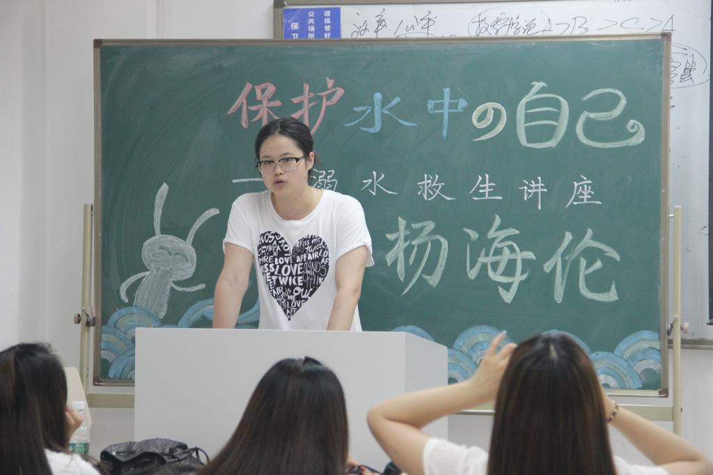 此次讲座中,杨海伦同学以幽默风趣、通俗易懂的讲述方式,帮助同学们了解了游泳运动的专业知识,在扩充了同学们对游泳运动和溺水知识的同时,教授了同学们自救与救生的技能,使同学们受益良多。