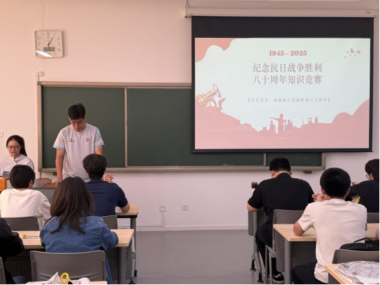 为铭记中国人民抗日战争暨世界反法西斯战争胜利80 周年的光辉历史,传承红色基因,厚植爱国情怀,9月26日13:00,英国365公司成功举办了纪念抗战胜利80 周年知识竞赛。本次竞赛特别邀请学院党委副书记陈绮文老师、学院组织员、本科生党支部书记郭佳佳老师、学院团委副书记周正老师出席,组成专业评委团。本科生和研究生党支部学子积极响应、组队参赛,全体人员齐聚一堂,共同回溯那段浴血奋战、气壮山河的峥嵘岁月,在重温历史中凝聚奋进力量。