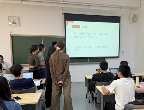 随后,陈老师上台进行总结发言。她首先对本次竞赛的圆满举办给予了高度评价,接着指出,本科生党支部与研究生党支部共同参与此次活动,现场氛围轻松且热烈。大家在竞赛中学习历史知识,在交流互动中增进了支部间的情谊,这种活动形式极具意义。同时,她也对全体学子寄予了期望,希望未来两个支部能够进一步强化交流与合作,积极创新红色文化活动的形式,让红色基因在互动中得以传承,让爱国情怀在实践中不断深化,携手为学院的红色文化建设和人才培养贡献力量。